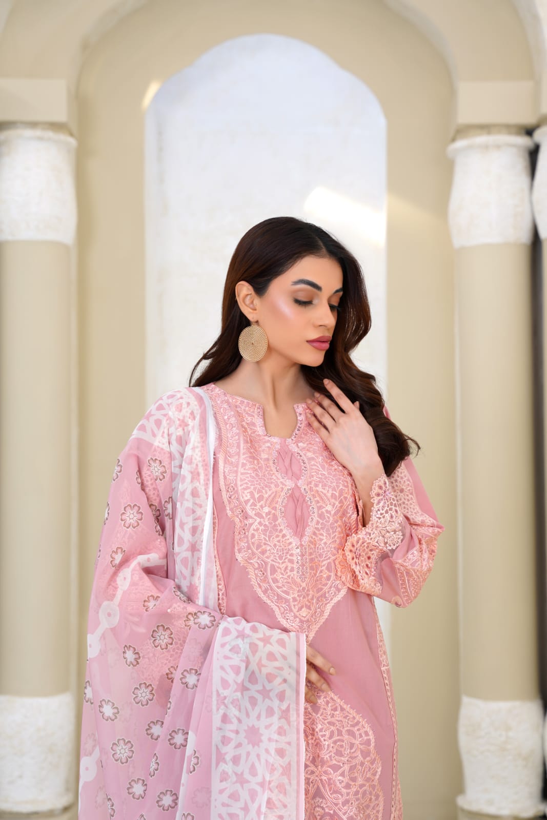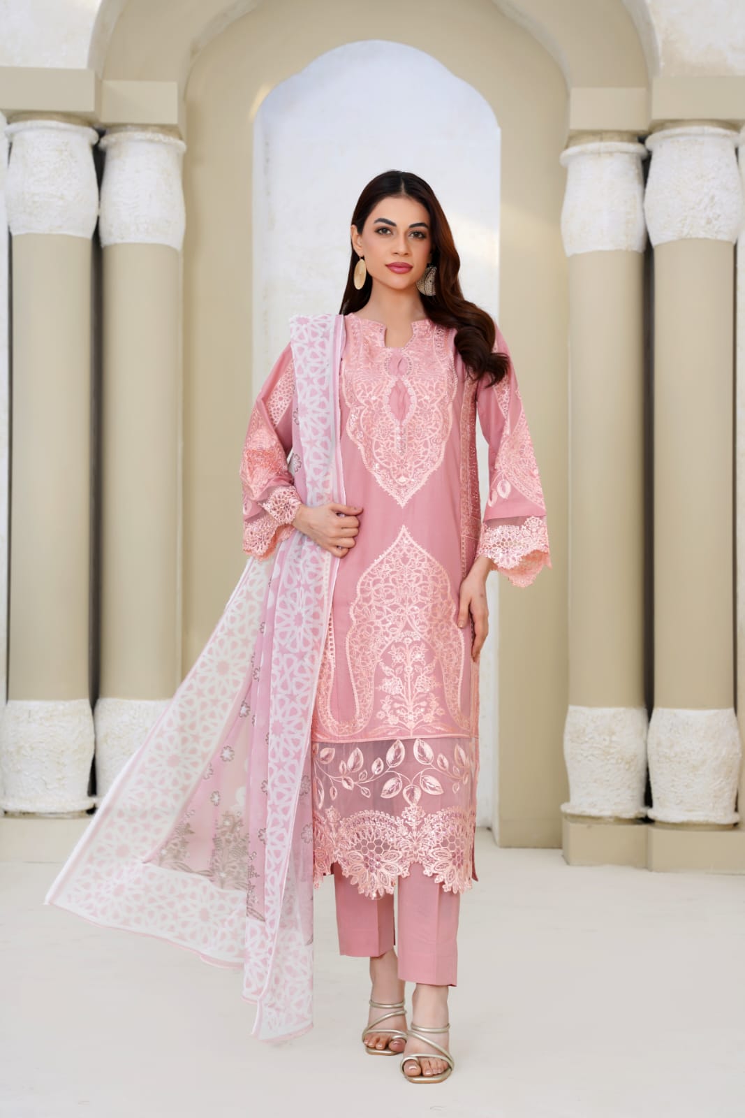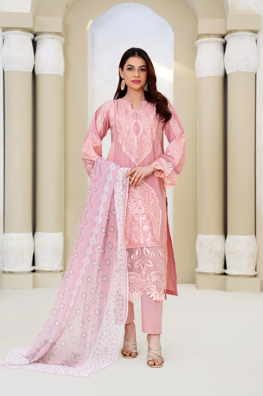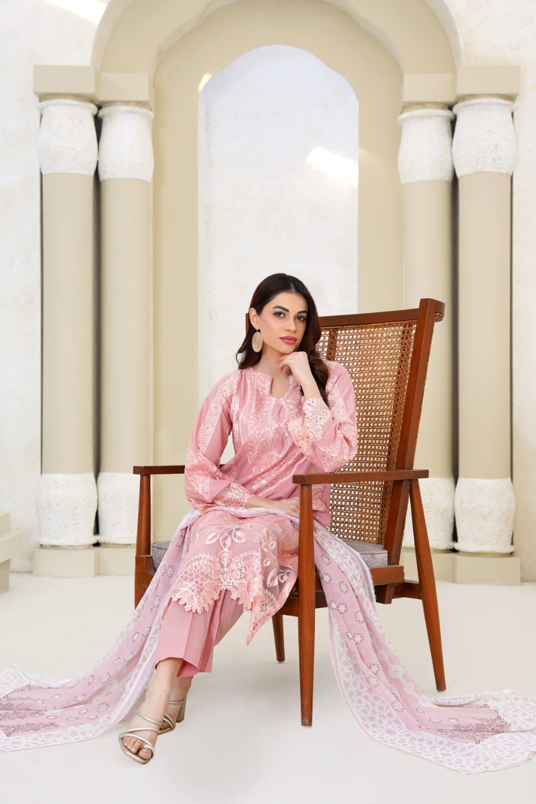 Step into refined sophistication with Bin Moin Fashion’s Pink Micro-Textured Three-Piece Suit, expertly tailored from premium high-density lawn to offer a breathable and summer-friendly feel without compromising on structure.
