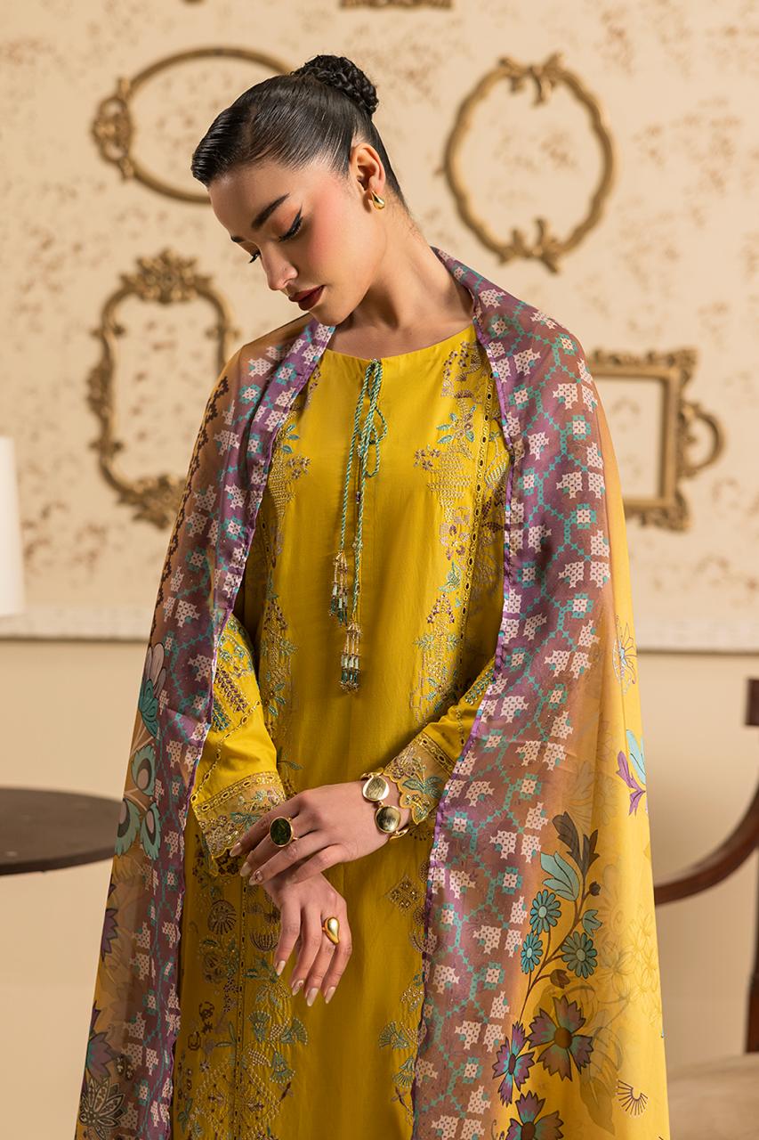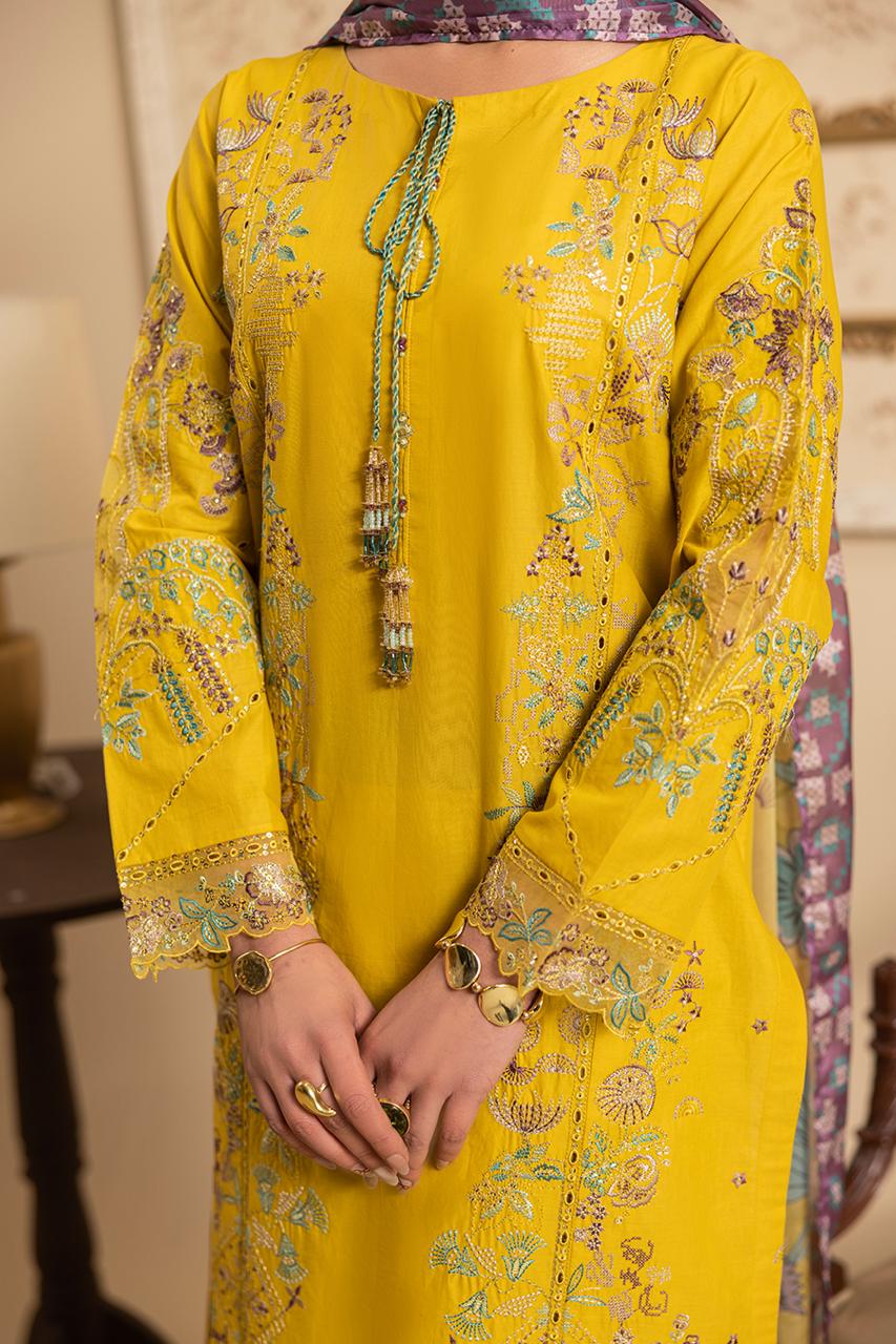 The Golden Hour (Article No D-145) from Binmoin Fashion is crafted from high-quality lawn fabric, known for its softness and breathability. This material ensures comfort, making it ideal for warm climates or casual wear. Its durable composition also supports long-lasting use, maintaining its form and appearance over time.