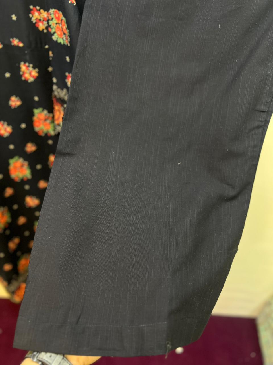 Intricately designed contrast panels of cream and dense navy/black paisley prints add a rich, elegant touch.