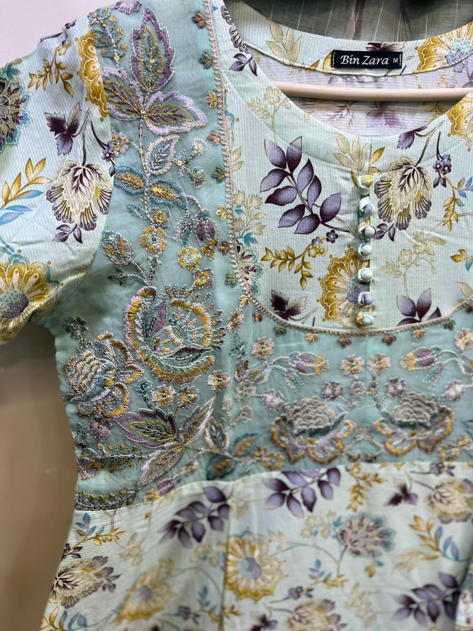 This captivating ensemble is crafted from soft, breathable cotton fabric and features a deep moss-green base beautifully patterned with intricate black and white floral prints.