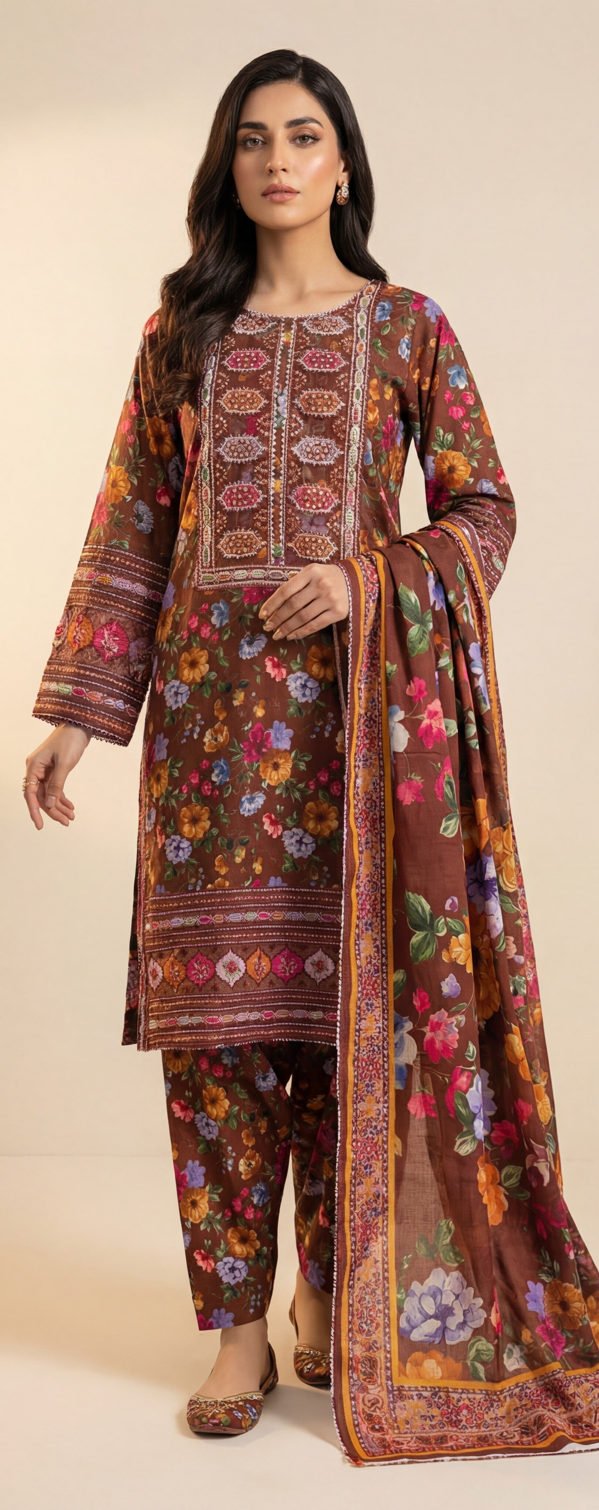 This stunning two-piece suit is crafted from premium Cotrai Cotton fabric, offering a breathable, comfortable texture that is ideal for all-day wear while maintaining its vibrant print.